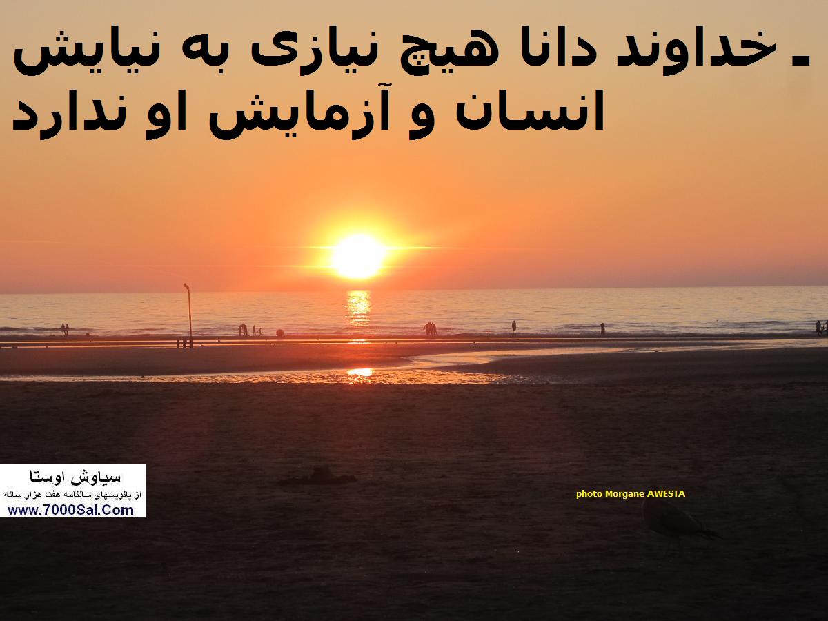 I am a follower of AVESTA! (Zoroastre) From AVESTA, wisdom tendency, kindness, Aryan, Persian, Mithraism to Zoroaster, the messenger of well thinking, well talking and well acting to Manes, a thinker and artist who has drown what Buddha and Jesus had thought…to Mazdak, the first socialist in the world to Cyrus the great whom has been mentioned both in Old Testament and history as the saviour of Jews and one who has written the first human rights’ law and also to the Iranians’ artistic, historic, civilized and thoughtful resistance against Arabs’ attack and Islamic fanaticism by means of the quatrains of scholar Omar Khayyam Neyshapoori and the lyric poems of Hafiz Shirazi … and 7000 years old hills located in Silak Kashan and Pamir plains in Tajikistan and Buddha’s statues in Afghanistan … and fire-temples in Azerbaijan and the burned city in Sistan and Baluchistan… and 7000 years proud history of the people who have lived in Iran’s great plateau by their different culture from Ilamids to Medes.
